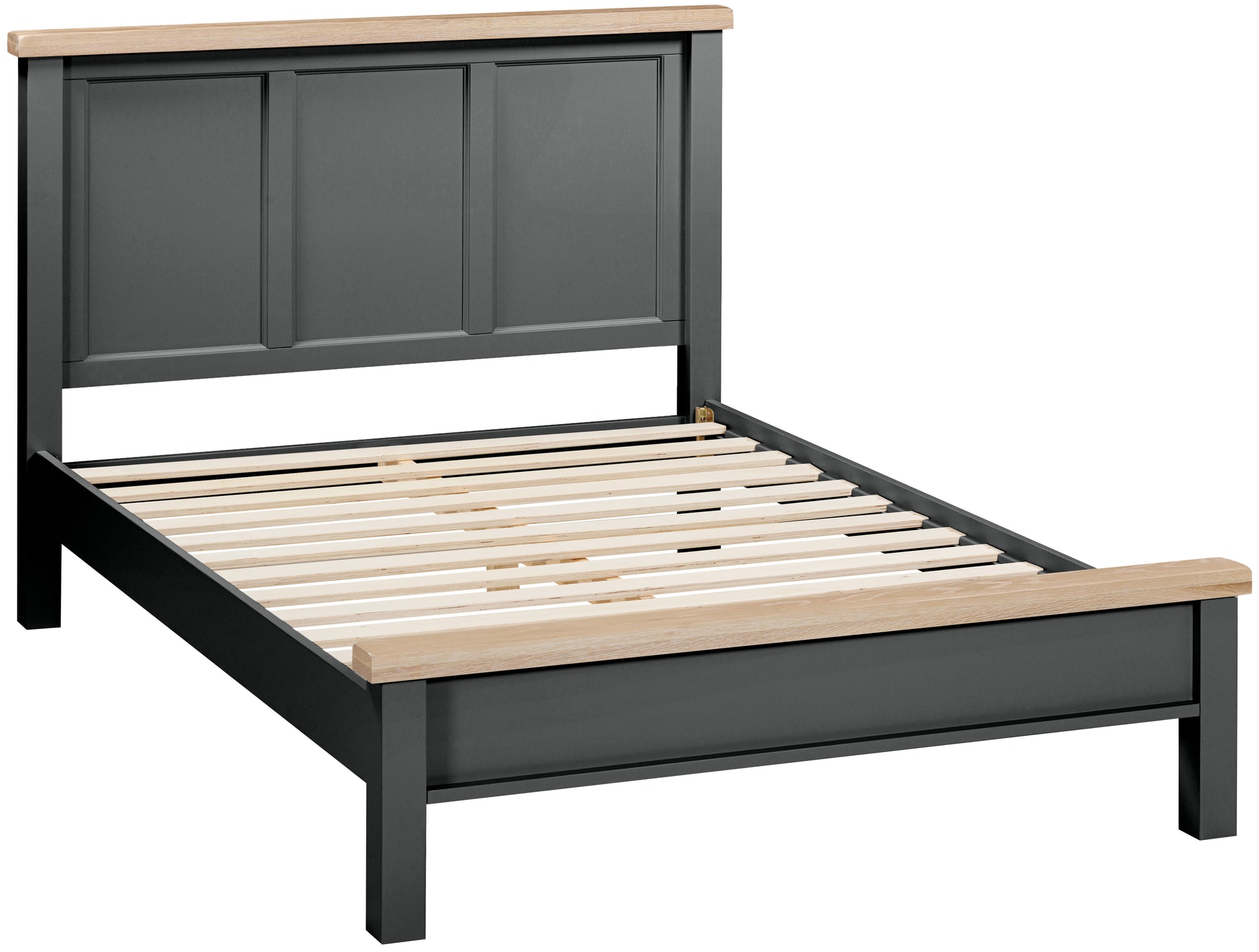We spend many hours in our bed so it’s important to create a comfy and tranquil place to lay our heads. Pair this bed with a super comfy mattress and you have the perfect place to relax and sleep. This double 4’6″ bed features a painted panelled headboard, and a low foot end, both with a pale oak top cap for a striking contrast, all in our signature Ashford style. Add our Ashford bedsides, either standard or compact, for the perfect companion to your bed, adding storage and surface space. This bed comes with a choice of nine stunning paint colours, perfectly suited for a variety of interior design styles.