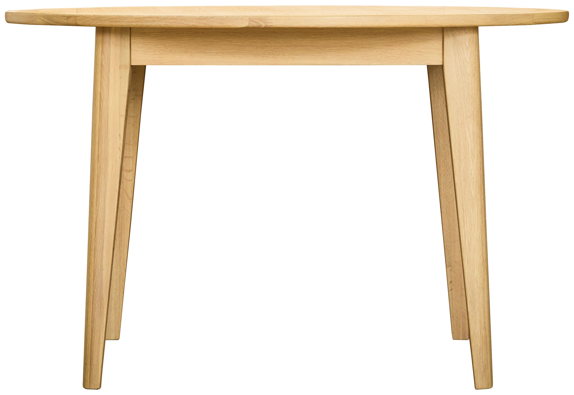 Create a Scandi style dining area in your home with this stunning round dining table. At home in a variety of interiors, the uncomplicated and sophisticated design features curved slim legs, round top and a pale oak finish, creating a contemporary feel. The table comfortably sits 4 for a cosy gathering. Our matching dining chairs complement the table beautifully, with the same pale oak finish, curved legs, and colourful upholstery.
