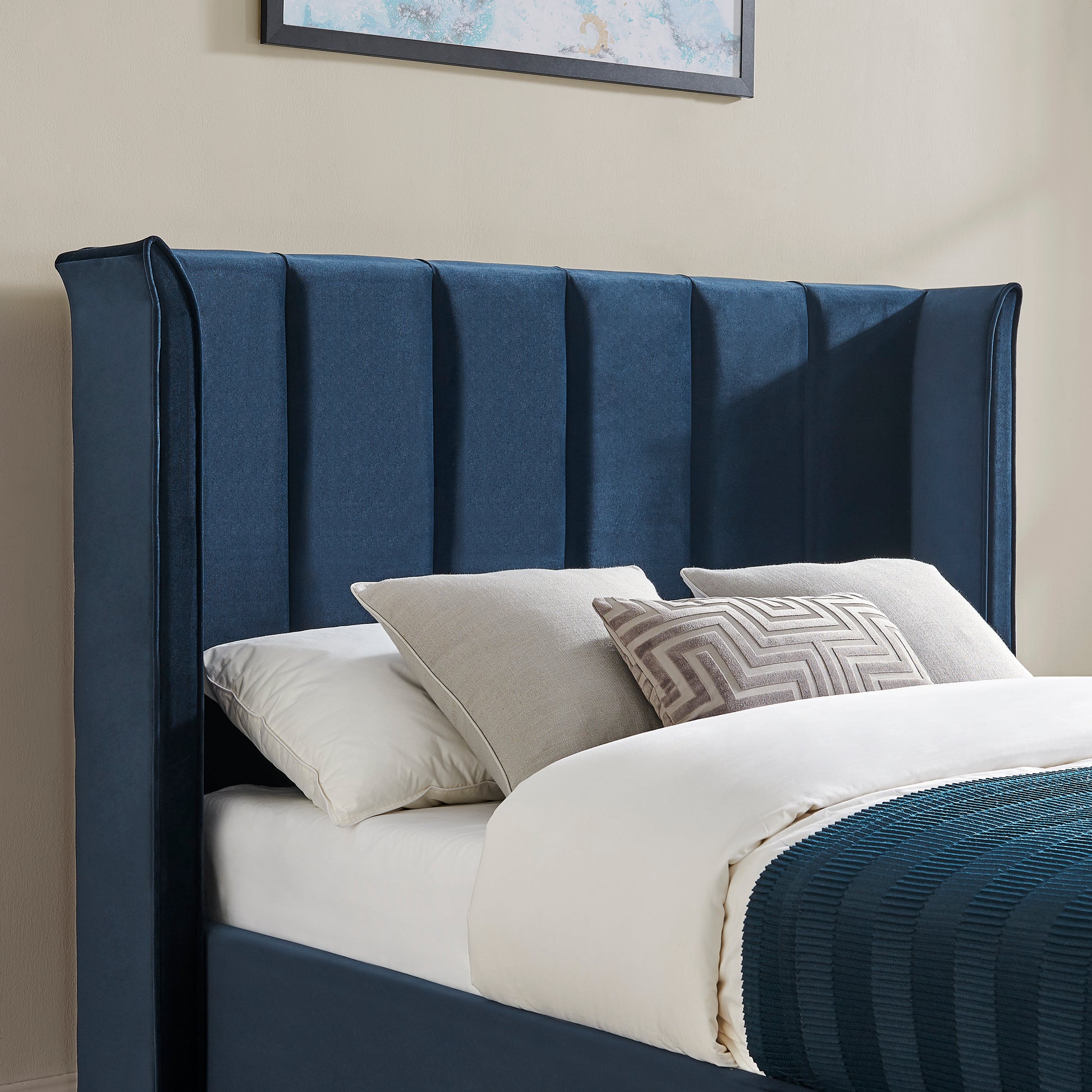 A grand way to elevate any bedroom, finished in a luxurious velvet made from a 100% Recycled Low Carbon fabric.